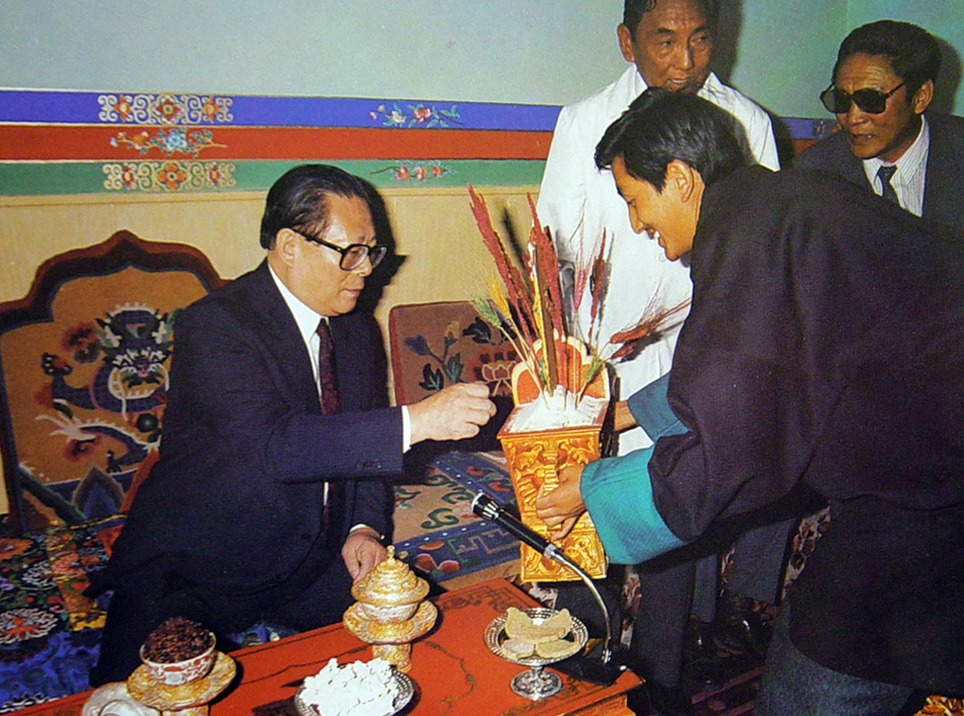 1991年時(shí)任西藏自治區(qū)黨委書記胡錦濤同志蒞臨甘露藏藥視察指導(dǎo)工作