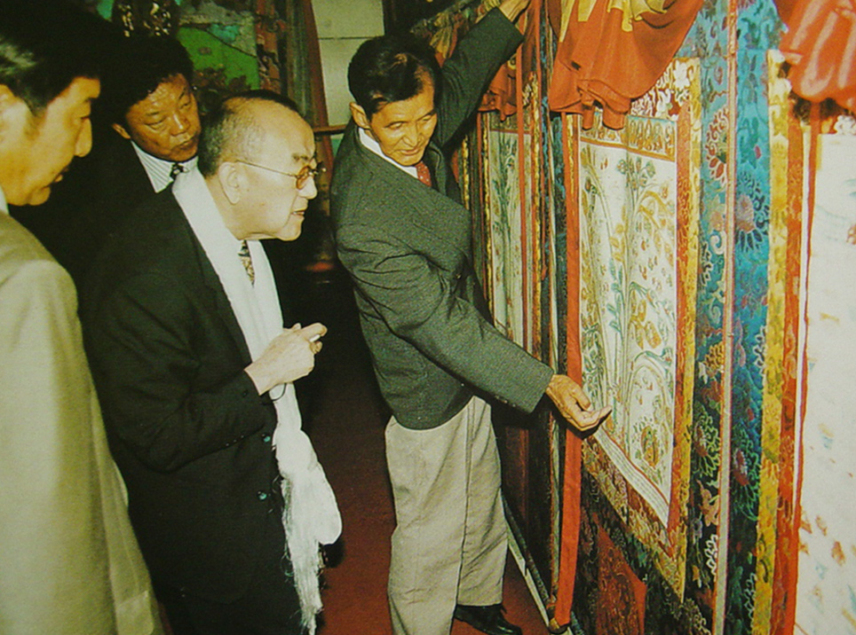 1997年8月19日,時(shí)任世界衛(wèi)生組織總干事中島宏在甘露藏藥聽(tīng)取藏醫(yī)專家講解藏醫(yī)診治疾病掛圖