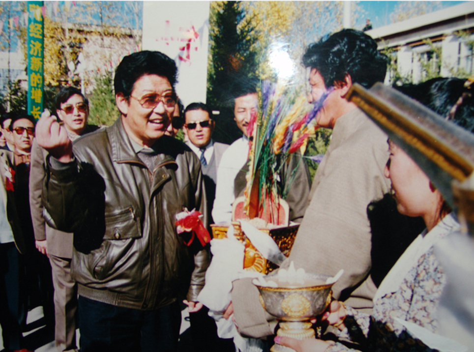 1987年8月31日,全國(guó)政協(xié)副主席阿沛阿旺晉美視察甘露藏藥配藥室